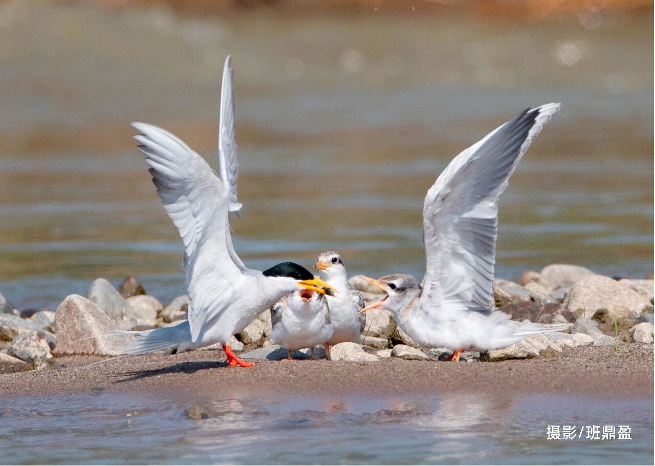 护鸟员岳波晃宝和克波朗宝岳波晃宝长期观察河燕鸥求偶和育雏行为,他记录道,这些江畔精灵的求偶过程,浪漫、赋有仪式感。雄鸟会以捕食为机,在空中展示优美的飞行姿态,时而高飞、俯冲,绕着雌鸟反复盘旋。雌鸟会在一旁观察,认可雄鸟后才互相靠近,用喙轻轻触碰对方,完成这场求偶仪式。到了育雏阶段,亲鸟们轮流守巢,一旦发现异动,立刻发出尖锐的叫声驱赶入侵者。与岳波晃宝同行时,他说道“我们是来救你的……,它还会假装把我们引到一边。”当亲鸟带回食物,将捕获的小鱼轻轻塞入雏鸟嘴中。看着雏鸟欢快进食,岳波晃宝形容,亲鸟的眼神里充满了慈爱,每次看到育雏的场景,感受到生命的伟大和脆弱,也更坚定保护它们的决心。