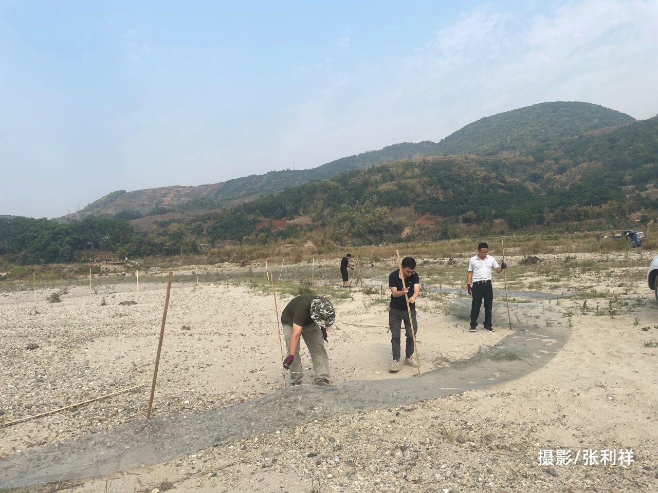 大盈江干支流附近的广大区域多为冲击性砂壤土,是粮食、甘蔗、油料、烤烟的主要产区,人为活动频繁。由于繁殖和产卵地特殊,周边村寨放牧和牲畜活动常见,河燕鸥育雏成功率受环境影响较大。2018年至2020年间,最先关注河燕鸥的公益组织“嘉道理保育”,组织了大量科普宣传工作,引入了在柬埔寨实施河燕鸥保护的成熟经验——安装护巢网。他们的研究表明,合理安装护巢网能够显著提升繁殖成功率。后续多年,我都以围网保护作为参照指引,结合实地情况设计行动方案,每次均动用大量人力在最短时间内完成安装,力求将干扰程度降到最低,防止亲鸟因离家太久而弃巢。
