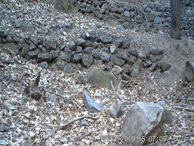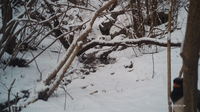 阴面的沟里拍到2只打架的红尾鸫,红尾鸫是冬候鸟,喜欢在地面活动。红尾鸫喜欢吃虫,冬天主要以植物果实为主,是非常优秀的种子传播者。红尾鸫出镜是比较隐蔽的。有一张照片,看的时候以为只有岩松鼠,切换时才发现还有只鸟。除了和松鼠,红尾鸫还和红嘴蓝鹊合过影,还有在红嘴蓝鹊眼皮底下找吃的。打架的视频还是第一次见到,是不是抢我们红外相机的机位打起来的了,233333。