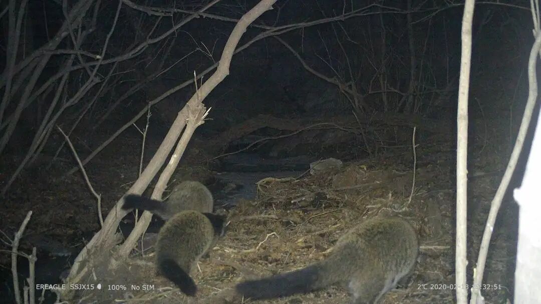 虽然北京有过华北豹的记录,但如今山里的野生猫科动物大概只有豹猫了吧。这次有2台红外相机拍到了豹猫。共出镜4次。在冰面上溜达2次,在镜头前匍匐1次,还有1次看上去在思考猫生——“该走哪条路好?”。不知道是不是冰面太滑,优雅的猫步都不见了,小心翼翼的踩着。