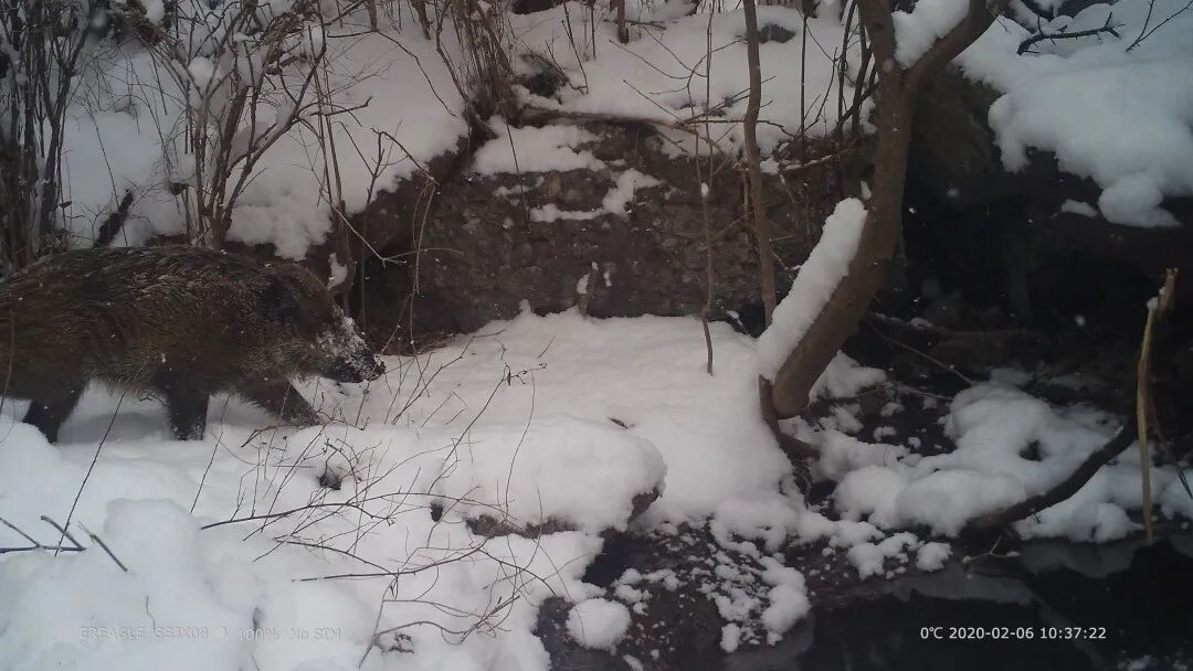 斑羚是这次意料之外的动物。作为国家二级保护动物,在过去的日子里不断遭受着盗猎的威胁,能拍到也是难得。这回拍到了斑羚舔冰,冬天河流结冰后,还可以通过吃雪河舔冰来补充水分。这次只拍到一个脑袋,好期待下次能拍到它的全身照。