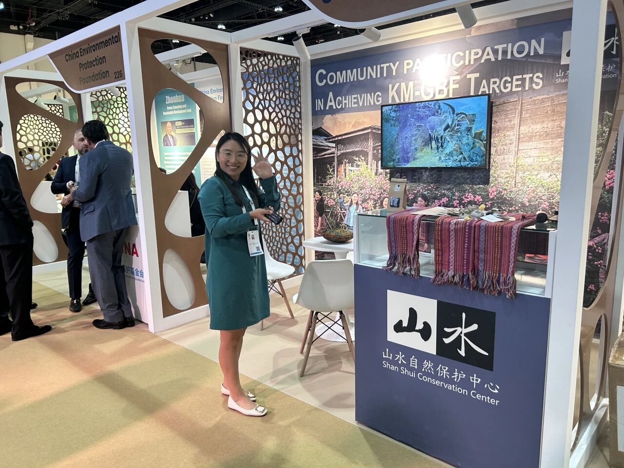 本次我们将展示来自多个项目地社区参与保护工作和可持续发展生计相关的物品和影像,向来自世界各地、背景多元的参会者展现中国本土社区在生物多样性保护领域的实践和做出的努力。在门巴族阿姐们身着传统服饰欢快舞蹈的展亭背景中,我们布置了来自墨脱的茶叶、传统竹编器具,以及来自嘉塘藏族阿姐们亲手制作的毛毡背包、杯垫和文创玩偶,每一件展品都承载了文化底蕴和社区智慧。我们期待在大会期间能够通过这一方小小的展亭,与更多志同道合的朋友增进交流。