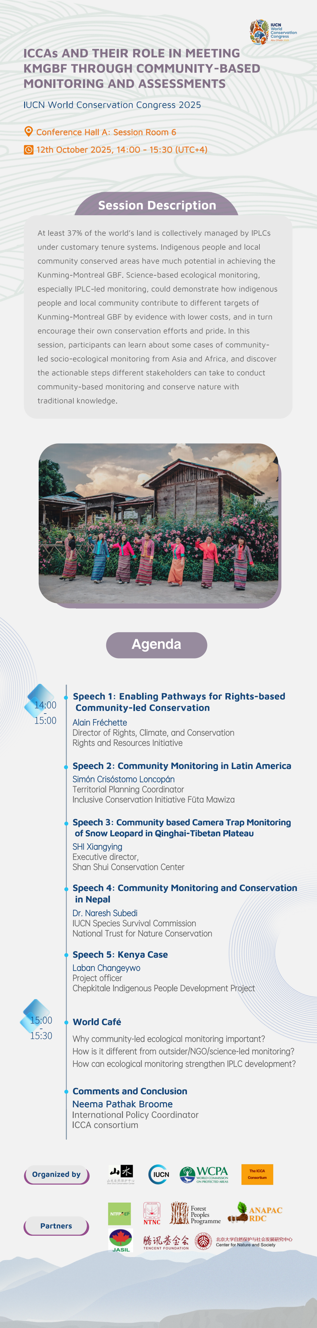 基于科学的生物多样性监测,特别是当地社区主导的监测,能够以更低的成本展示原住民和当地社区如何为“昆蒙框架”的各项目标作出贡献,进而激励其自身的保护行动并增强自豪感。本环节将分享亚洲和非洲本地社区主导的生物多样性监测案例,探讨不同利益相关方可采取的具体行动步骤,以开展社区监测并运用传统知识保护自然。