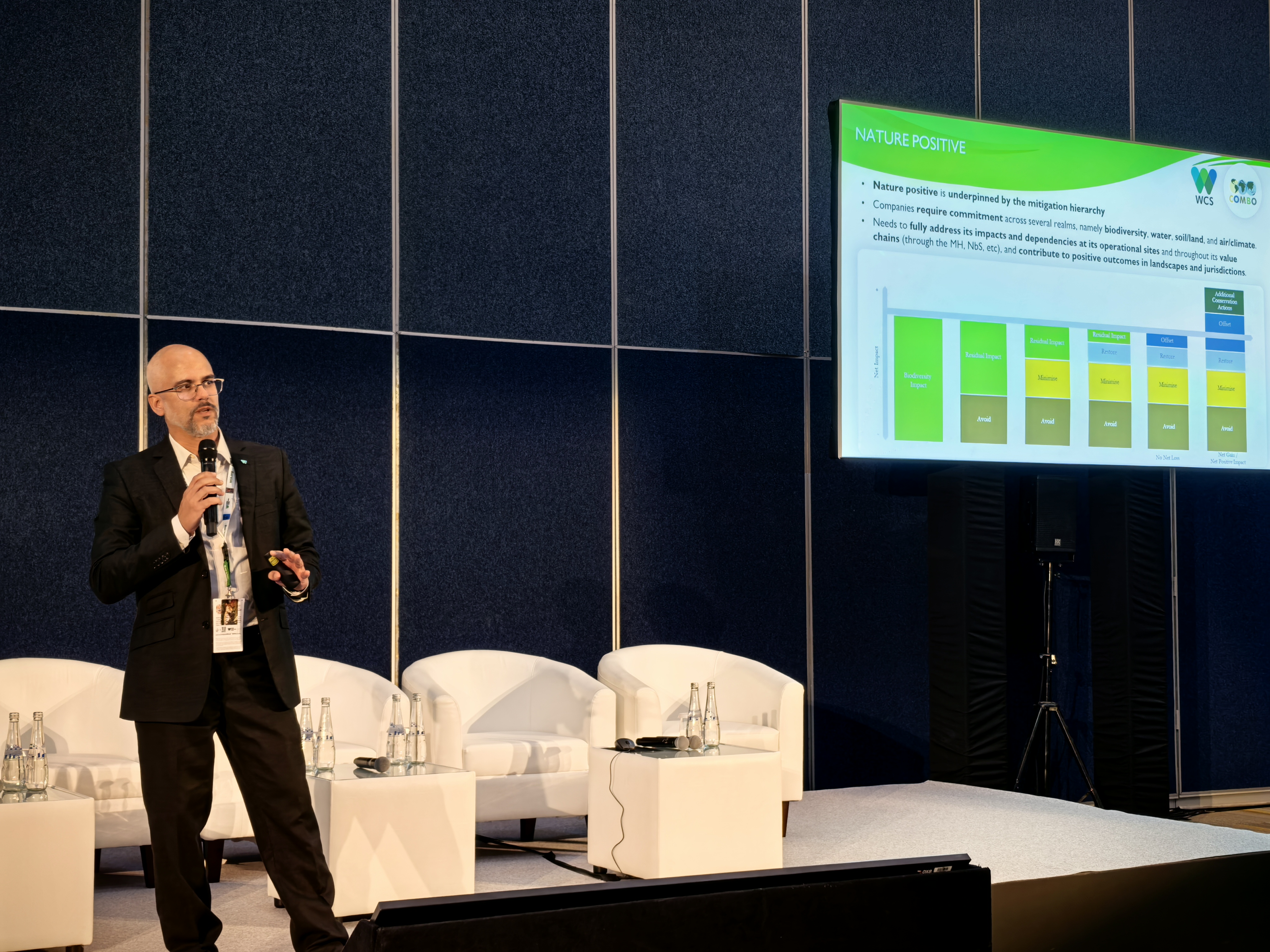 国际野生生物保护学会(WCS)商业与生物多样性影响总监(Director of Business & Biodiversity Impact)Hugo Costa介绍了该协会在莫桑比克及其他非洲和亚洲国家实施的”保护、减缓与生物多样性抵偿”(COMBO+)计划的实践经验。该计划通过完善实施包括生物多样性抵偿机制在内的减缓层级措施(Mitigation Hierarchy),成功实现了经济发展与生物多样性保护的平衡。该计划通过与政府、私营部门、学术界及社会组织合作,确保项目层面实现”零净损失”(No Net Loss)与”净收益”(Net Gains)目标,从而推动实现自然正向并达成国家生物多样性目标。具体措施包括参与政策立法制定、开发技术工具与指南、提供能力建设支持,以及设计长期实施机制。