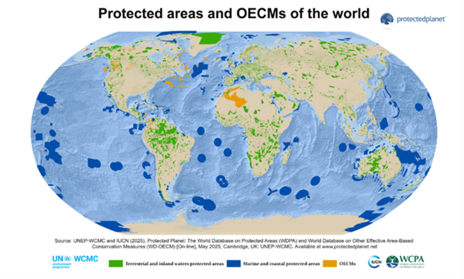 全球自然保护地和OECMs地图(“保护星球”网站,图源自Heather Bingham的PPT)