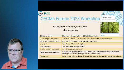 在欧洲,各方共同讨论识别出一些潜在的OECMs类型,包括私人管理的保护区域、军事用地、精神/文化/宗教场所、保护地外高保护价值的森林、具有淡水管理措施的河流流域、农业景观、海洋生态系统等。Heather Bingham对这些类型进行了介绍,并强调OECMs的识别需要基于个案分析(case-by-case),同时关注这些区域是否因面积太小而难以具备显著的保护价值。她也建议在OECMs的识别中可以关注具有可识别的生物多样性价值的区域,支持现有的、能够产生长期持续保护成效的保护措施和治理体系。