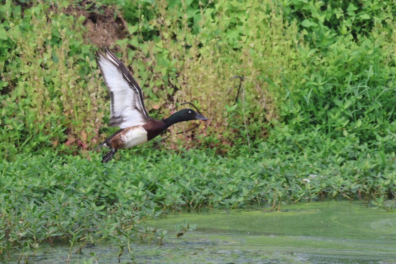 2020年4月的一天,武汉市观鸟协会的成员邓雪峰来到豹澥湖骑行,他穿过一排杨树,越过村湾,开阔的湿地水塘便显露出来,天气晴好,水面上各类水鸟悠闲地凫行。他习惯性地举起望远镜扫去,视野里出现一只在水草上休憩,头部泛着绿色光泽,两胁有栗白相间排骨纹的鸭类。他愣了一下,又仔细确认外型细节,特征没有错,是国家一级保护动物青头潜鸭。