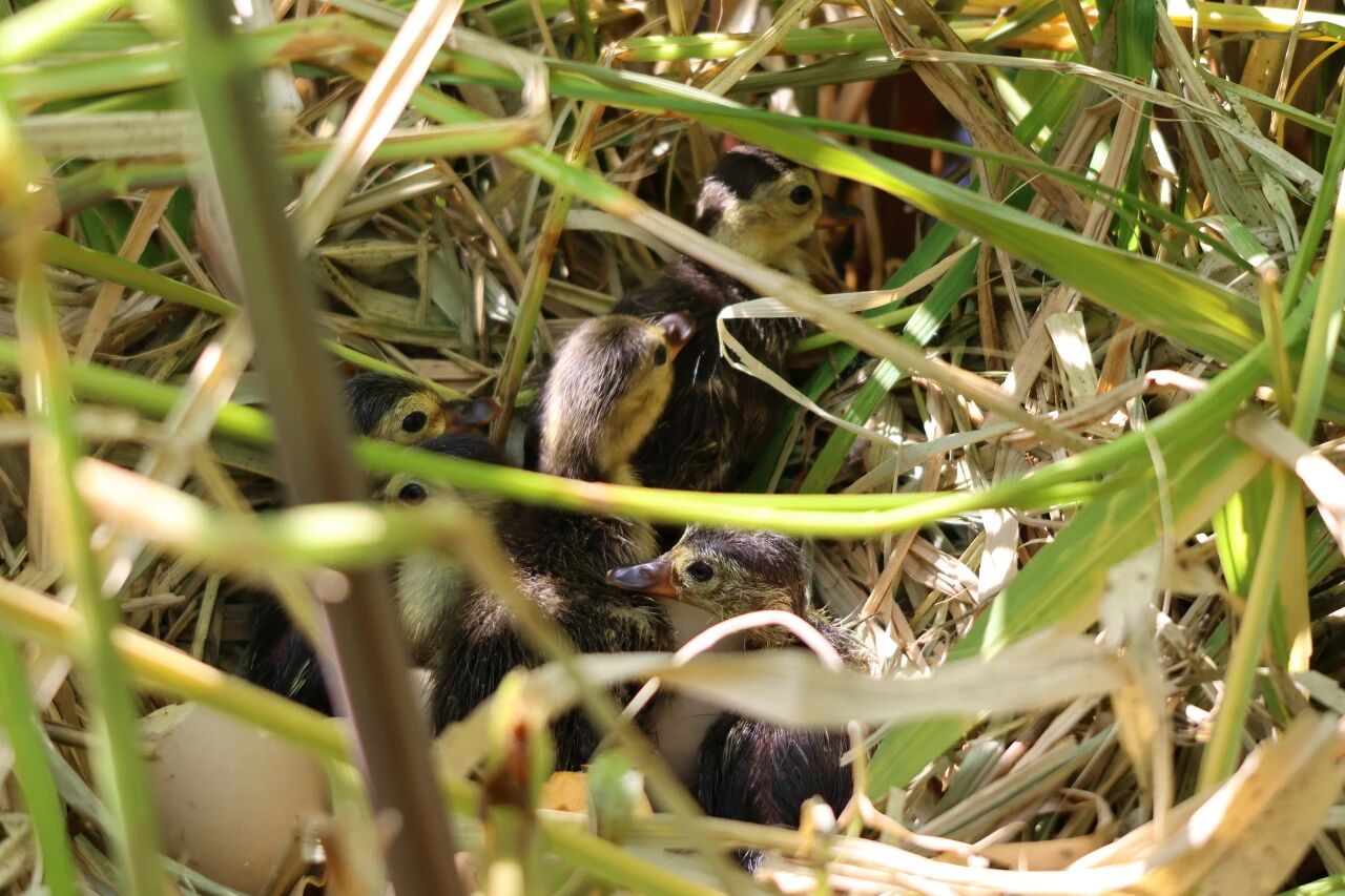 在加大力度调查的过程中,协会偶然结识了当地养殖户朱祥能,得益于他的配合,志愿者们进入他承包的200亩虾塘中细致寻找,在挺水植物的掩映下,他们陆续发现10个青头潜鸭的繁殖巢,随后数周的持续记录中,先后有 80 多只雏鸟顺利出巢,而根据已有文献与祁家湾的长期研究,青头潜鸭的繁殖率通常只有30%左右。因而,这里的数据显得尤为珍贵。