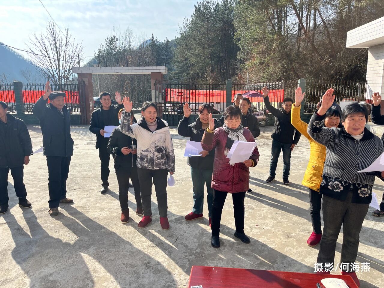 村民代表对评选的规则进行表决2025年1月6日,评选正式开始。那天依旧很冷,但村里格外热闹。由朝阳村村委、保护中心、公益岗位村民、普通村民代表、小组组长以及工作组混合组成了4个评选小组,每组大概7-8人,四个评选小组同时出发检查,不评本组,交叉评选,现场打分,当天评定。最终筛选出40户清洁卫生家庭和1个清洁卫生小组。我跟着其中一组,走进一家家院落,有的院子扫得发亮,柴火堆得齐整;有的门前全是破碎的塑料垃圾,户主一边和我们打招呼一边拿起扫把。