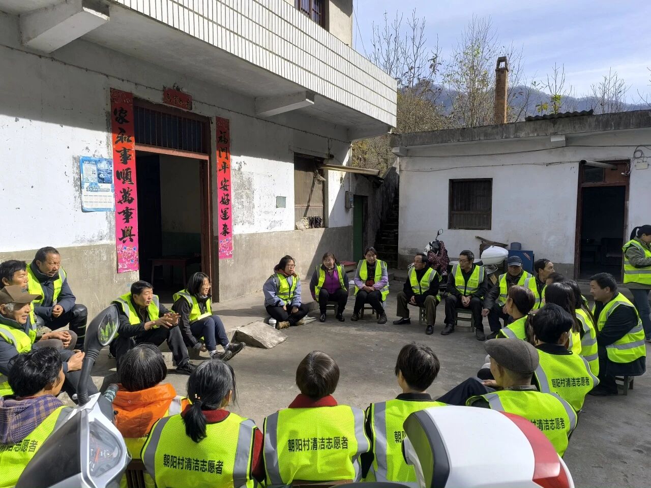 第一次清洁日活动后的社区会议于是,最后工作组几乎谈不上有什么项目创新点,因为这一年的核心工作,就是实践这种 “嵌入”。我们没有做宏大设计,只推动在村庄原有的行为与认知基础上,做一次集体的“系统升级”。目标也极为朴素——“垃圾不落地,垃圾出朝阳”。它不是一个需要复杂解释的环保口号,而是一个所有村民都能听懂、能判断、能参与的行动共识。让垃圾作为一个契子撬开社区融合的口子,让它作为村上进行公共事务议事协商和跟进行动的操练议题。
