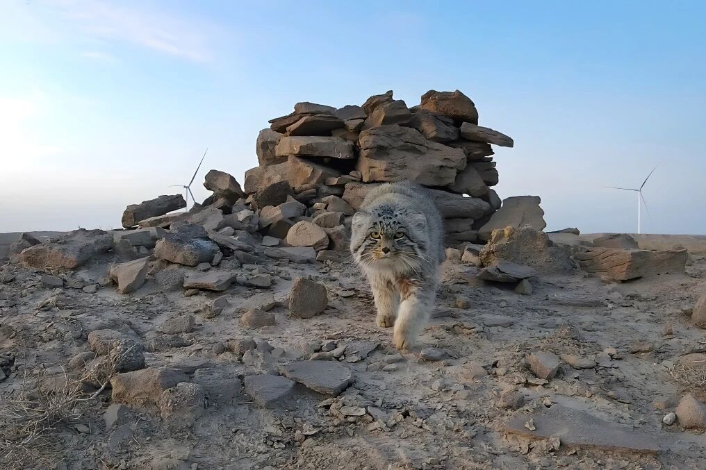 在张掖北部荒漠兔狲保护地拍到的兔狲