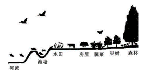 里山模式最早由日本提出,是指对村落周边的山林进行人工干预,定期适当间伐树木,使光线容易到达地面,再通过引水建造水田等培育多样性的动植物,实现水田农业与林业的共生。由于水田发挥了湿地的作用,所以比无人工干预的原生林的生态系统更加丰富,培育出独特的景观和传统文化。它处于原始自然和城市之间,成为两者之间的缓冲带,在生物多样性保护中起着非常重要作用。