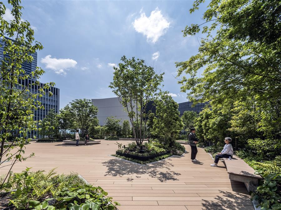 双子塔南楼位于大阪最繁华的梅田商业区(CBD),在超高层建筑的屋顶构建了绿化空间。 屋顶绿化没有种植外来的园艺花卉,而是严格筛选了大阪平原原本存在的原生植物群落进行复原。尽管位于几十米的高空,监测数据显示该屋顶花园已成功吸引了多种鸟类和昆虫飞来。它与地面上的淀川河流域、大阪城公园等大型绿地形成了垂直方向的生态连接,证明了城市高层建筑在生物多样性保护中的潜力。阪急阪神控股集团将其作为“可持续发展宣言”的具体实践,通过提升地产项目的环境附加值,增强了其在高端租赁市场的竞争力。