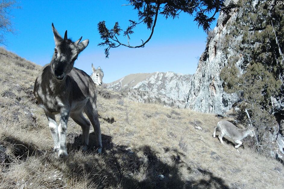 那索尼村藏族社区自然圣境保护地红外相机拍摄到的岩羊